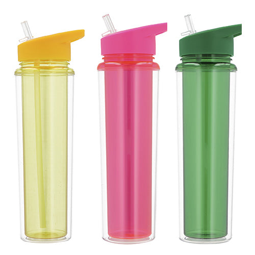 Cilindro de plástico de doble pared con popote y boquilla.