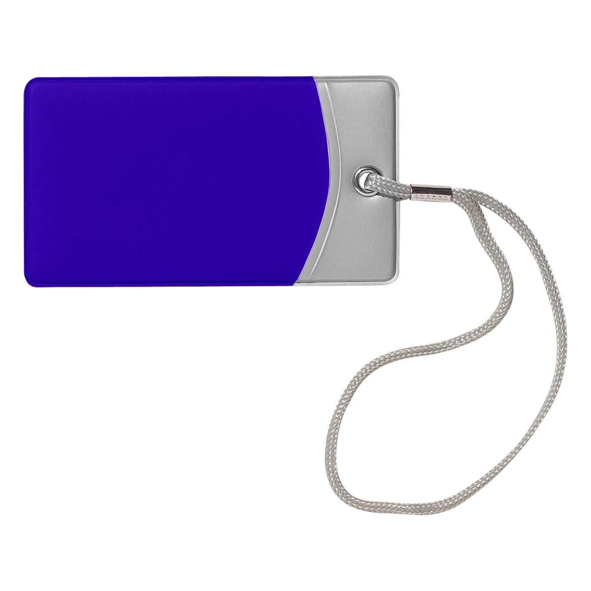 Identificador de equipaje fabricado de vinil con frente transparente y correa ajustable. Disponible en cinco colores diferentes.