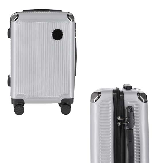 Maleta de plástico para viaje, con doble rueda giratoria, asa metálica retráctil y candado de seguridad.. Medida producto alto: 50 . Medida producto ancho: 34.5 . Area impresion: 4 x 4 cm