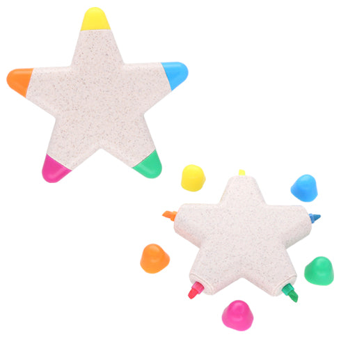Marcatextos de wheat straw fibra de trigo en forma de estrella con 5 puntas de colores.. Medida producto ancho: 10 . Area impresion: 2.5 cm Diámetro