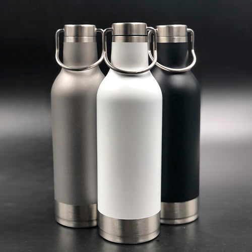 Termo con doble pared de acero inoxidable, tapa con asa metálica enroscable y base de metal.. Medida producto alto: 23.5 . Medida producto ancho: 7 . Area impresion: 7 x 8 cm