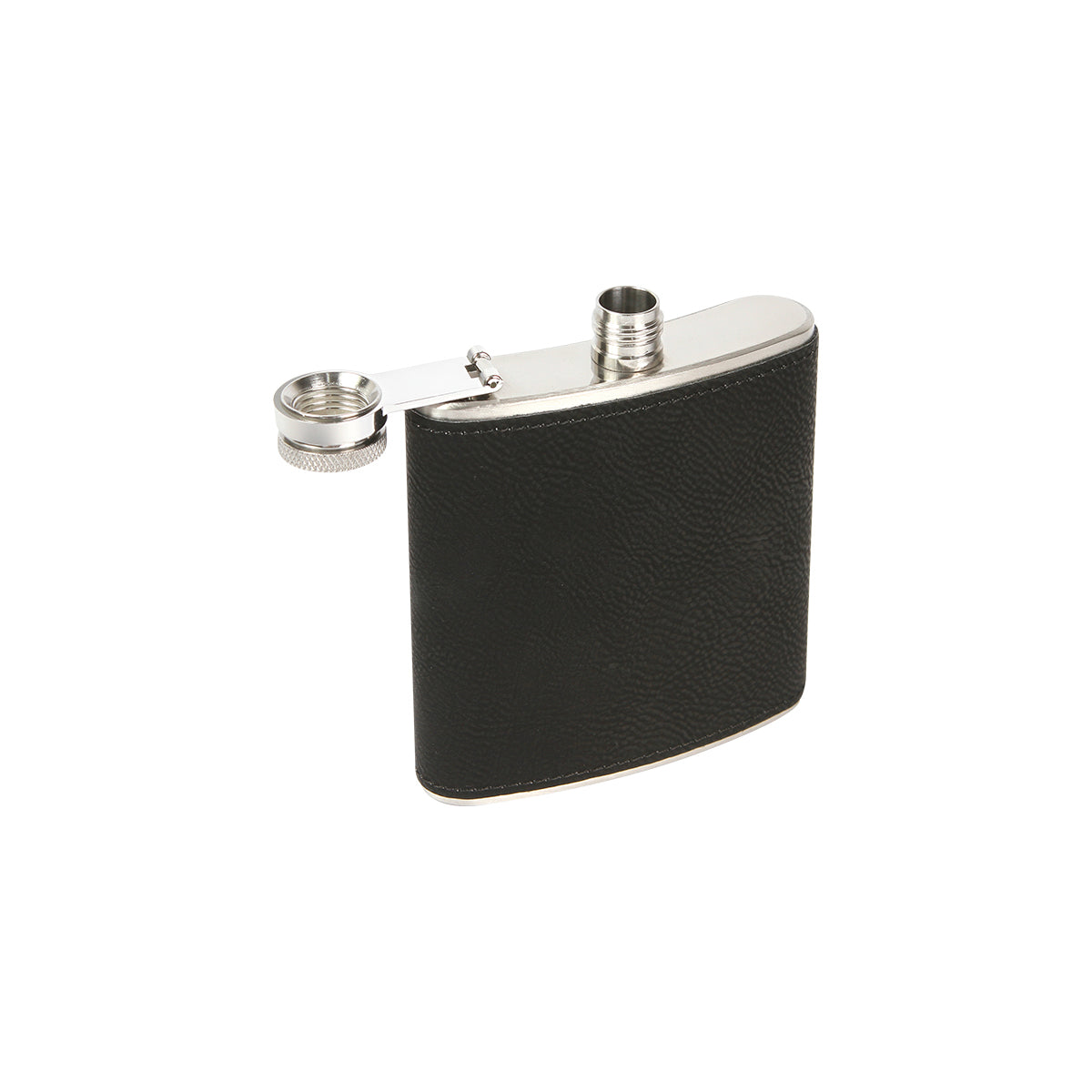 Licorera anforita fabricada en acero inoxidable con cubierta de curpiel, capacidad de 175 ml. 6 onzas. Tiene el tamaño y diseño elegante, la hace ideal para llevarla siempre contigo.