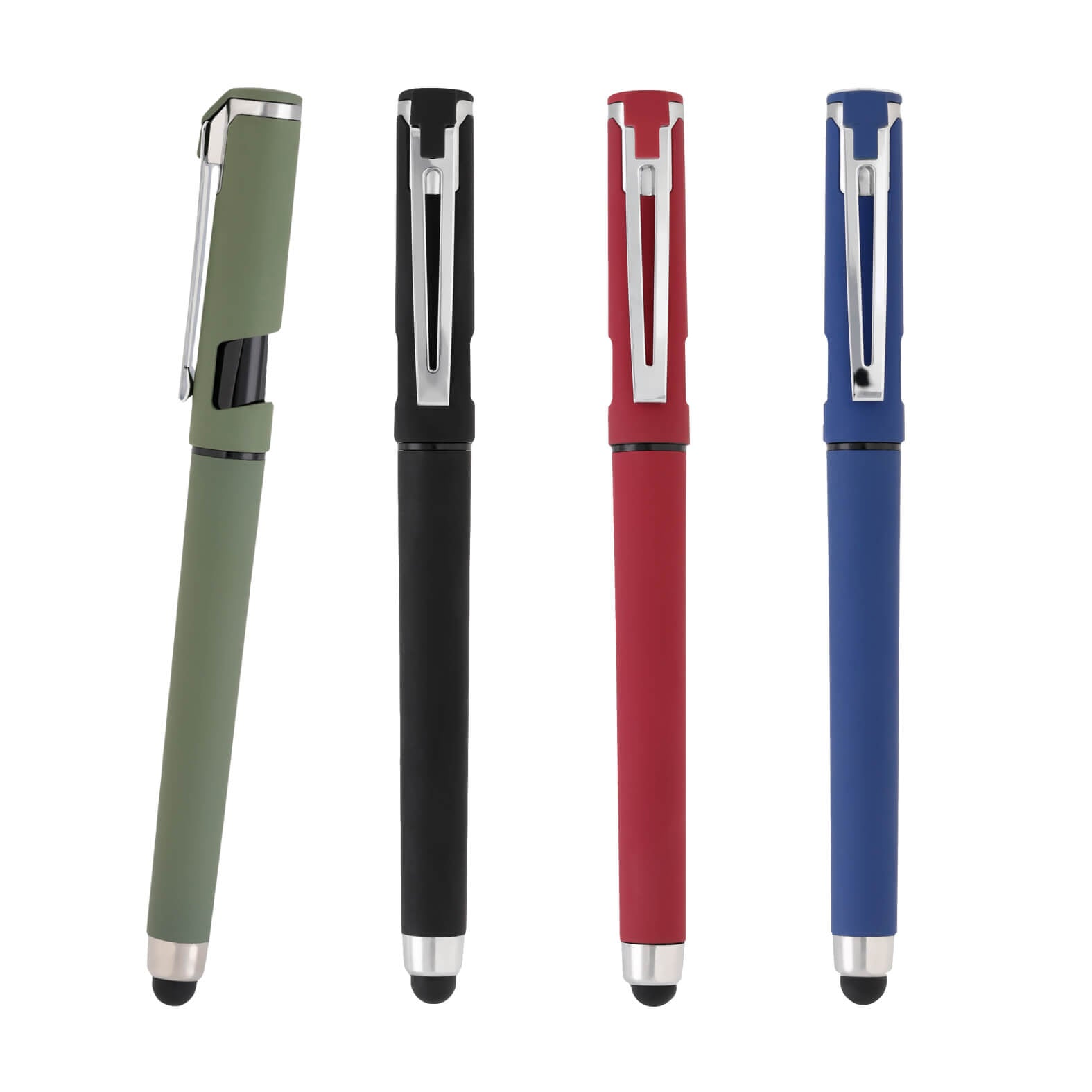 Bolígrafo de plástico acabado rubber, tinta de gel y goma touchs creen. Incluye tapa con clip y espacio que sirve como soporte para celular.. Medida producto alto: 1.3 . Medida producto ancho: 15.3 . Area impresion: 5 x 1 cm