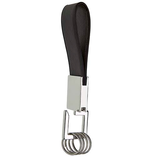 Llavero con 4 argollas. Incluye estuche especial.. Medidas: 1.8 x 9.5 cm . Material: Curpiel / Metal