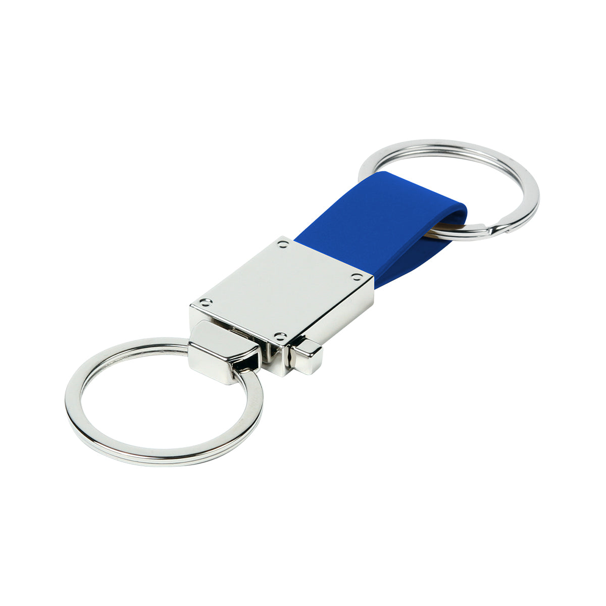 Llavero fabricado en aleación de zinc con correa de curpiel y argolla desprendible.