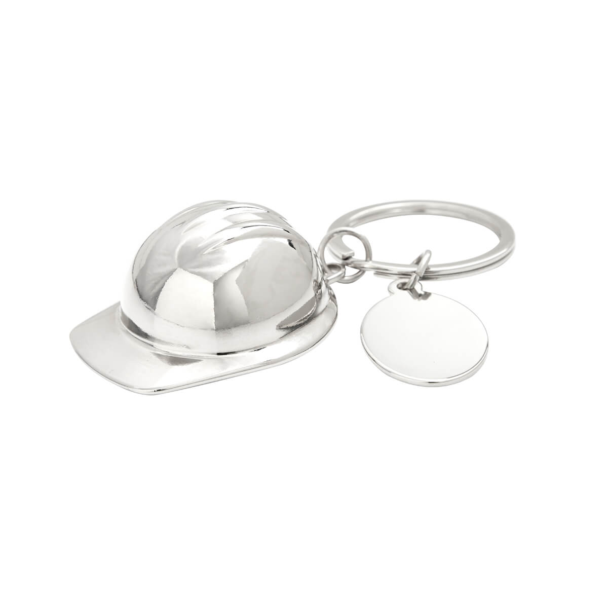 Llavero metálico con diseño en forma de casco. Accesorio perfecto para el sector industrial, construcción y seguridad. Incluye una placa ovalada para personalizar.. Medidas: 4 x 5.2 x 2 cm Casco / 3 x 1.4 cm Placa . Material: Metal