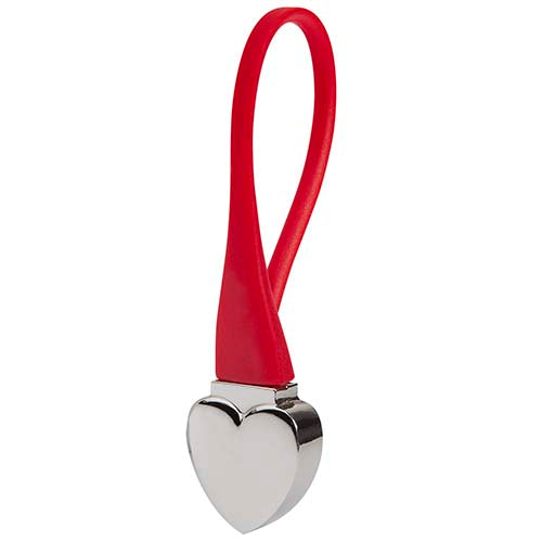 Llavero metálico en forma de corazón. Incluye caja individual.. Medidas: 2.2 x 10 cm . Material: Hule / Metal
