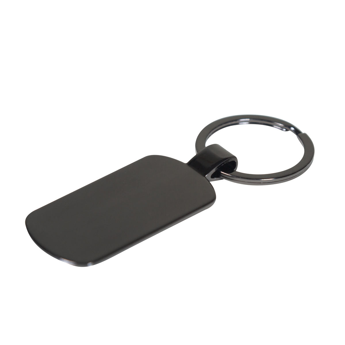Llavero metálico con diseño de placa. Incluye caja individual.. Medidas: 3.5 x 9.4 cm . Material: Metal