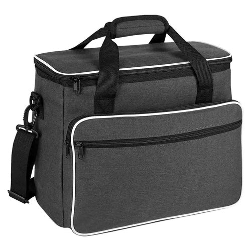 Interior plastificado. Bolsa principal y bolsas frontales con cierre. Asas con agarre de velcro y correa ajustable. Capacidad para 20 latas.. Medidas: 38 x 29 x 22 cm . Material: Poliéster