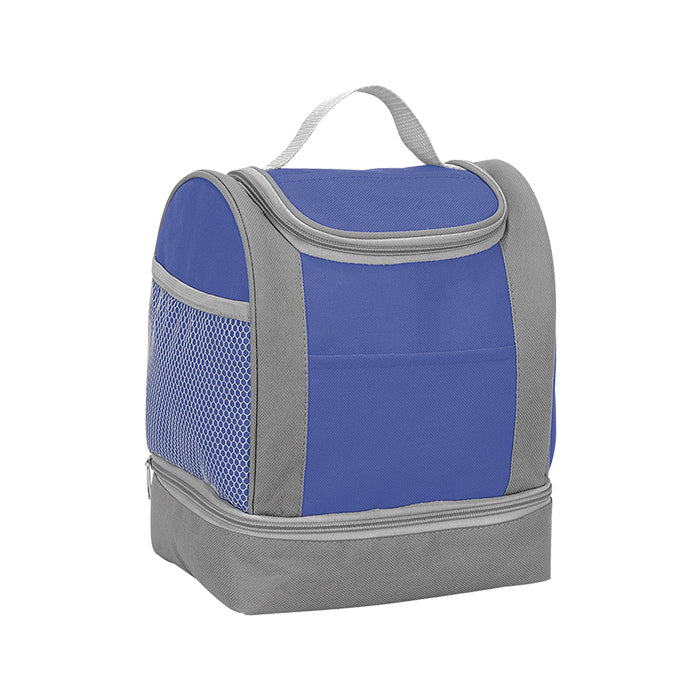 Lonchera doble fabricada en nylon de alta resistencia, ideal para mantener tus alimentos organizados y listos para llevar. Su diseño incluye varios compartimentos independientes que permiten separar comida o snack, además de una bolsa lateral tipo red para botella o accesorios.