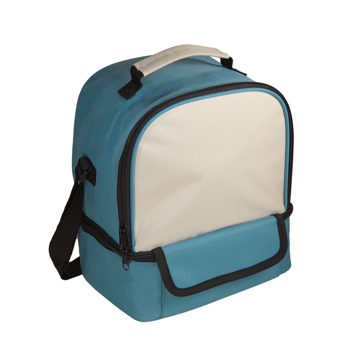 Lonchera con amplio compartimento principal de apertura frontal y práctico compartimento secundario en la parte inferior, perfecto para guardar snacks adicionales. El plastificado interior garantiza higiene y facilidad de limpieza. Incluye una bolsa frontal con velcro especialmente diseñada para guardar cubiertos, evitando que se mezclen con las demás pertenencias. Sus asas de mano y de hombro, ofrecen versatilidad para llevarla contigo. Capacidad para 12 latas.. Medidas: 23 x 19 x 12 cm . Material: Poliéster / Acetato de Vinilo de Polietileno