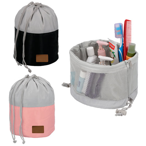 Cosmetiquera morral de viaje. Contiene 1 compartimento interno de malla, 1 compartimento interno de plástico y separadores de resorte.. Medida producto alto: 18 . Medida producto ancho: 26 . Area impresion: 4 x 2 cm