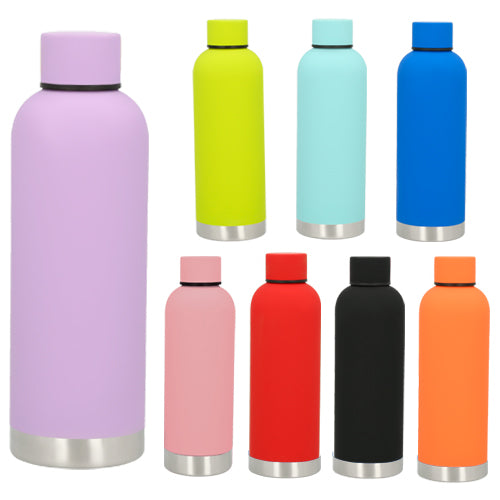 Termo de acero inoxidable de doble pared insulado al vacío con acabado rubber y tapa enroscable.. Medida producto alto: 22.5 . Medida producto ancho: 7.5 . Area impresion: 7 x 4 cm