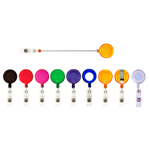 Yoyo portagafete de color traslúcido.. Medida producto alto: 8.4 . Medida producto ancho: 3 . Area impresion: 2 x 2 cm