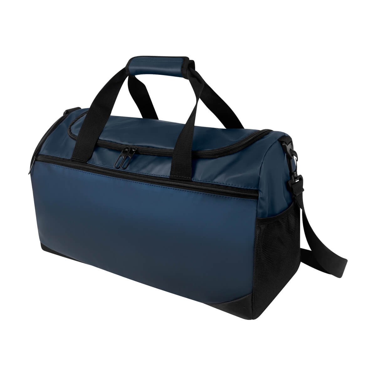 Práctica maleta con amplio compartimento principal y un bolsillo frontal con cierre. Cuenta con un compartimento lateral para calzado y un bolsillo lateral de malla para objetos pequeños. Incluye correa ajustable para hombro con broches de plástico removibles y asas de agarre superior. Perfecta para uso deportivo o viajes cortos. Medidas: 48 x 29 x 25 cm . Material: Poliéster
