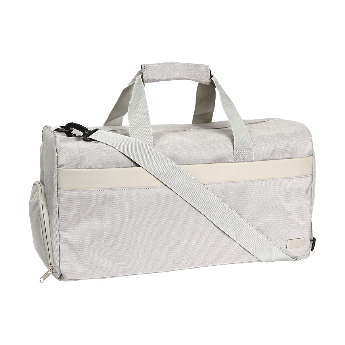 Maleta de viaje premium, fabricada en cuero sintético PU 900D, forro 210D, cinta de PP de 1,5 y placa metálica para grabar logotipo. Cuenta con correa de hombro, asas y bolsa lateral.