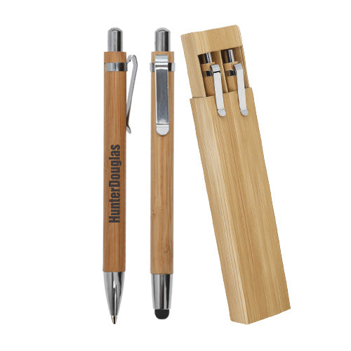 Bolígrafo y lapicero de bambú. Incluye estuche.. Medida producto alto: 14 . Medida producto ancho: 1 . Area impresion: 0.9 x 4.5 cm