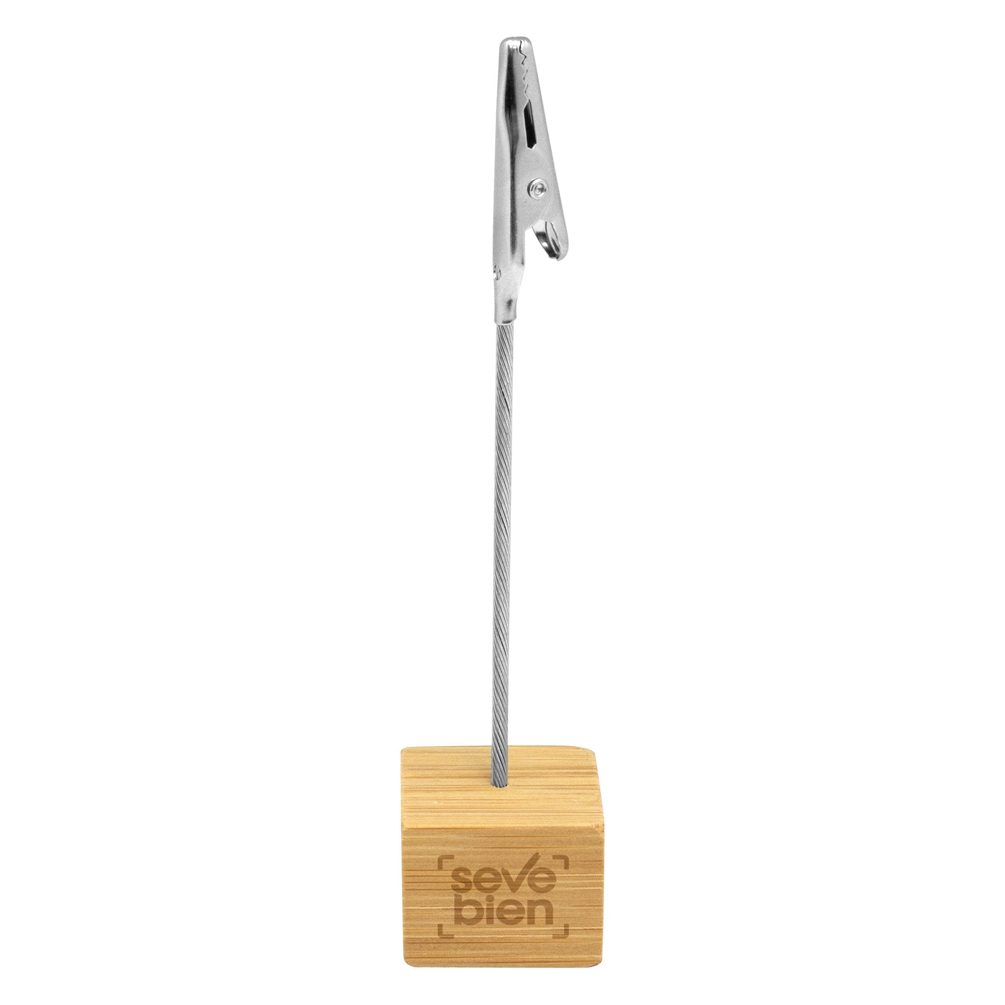 2,5 x 2,5 x 2,5 cm. Alto 11,5 cm Bambú y metal. Memo clip de escritorio con base cúbica en bambú. Broche pinza cocodrilo de metal. Práctico, útil y transportable.. Medidas Ancho: 28.0 . Medidas Alto: 39.0 . Medidas Profundidad: 53.0