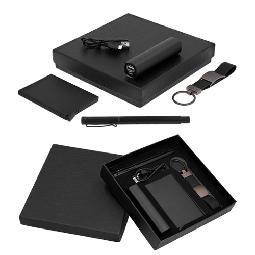 Set ejecutivo incluye: llavero metálico con correa, tarjetero metálico, pluma de metal con tinta gel, batería portátil de 2200 mAh con cable de carga y estuche de regalo.. Medida producto alto: 14.5 . Medida producto ancho: 14.5 . Area impresion: 4.5 x 7 cm