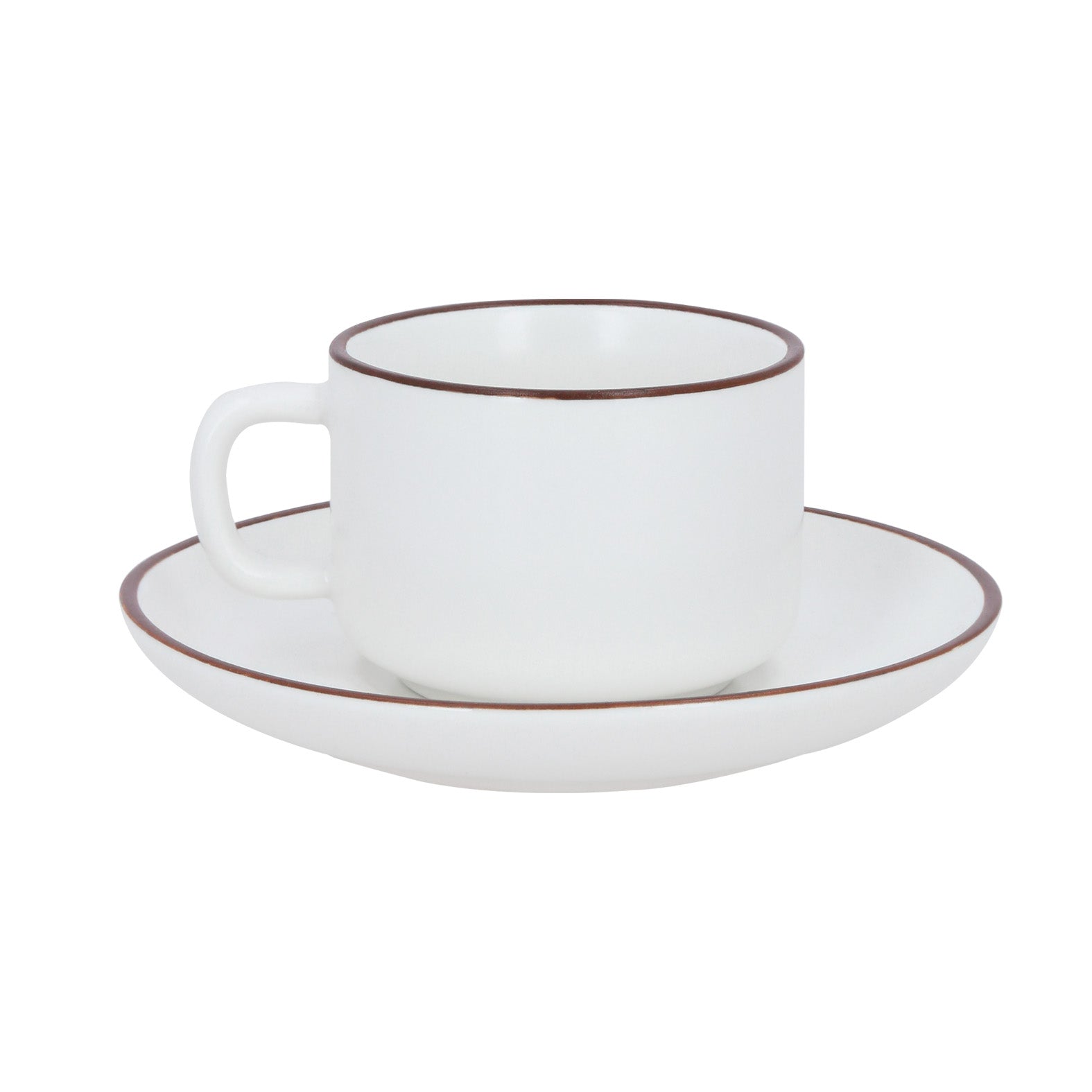 Taza y plato de cerámica con acabado mate.. Medida producto alto: 12.4 . Medida producto ancho: 12.4 . Area impresion: 4 x 2 cm