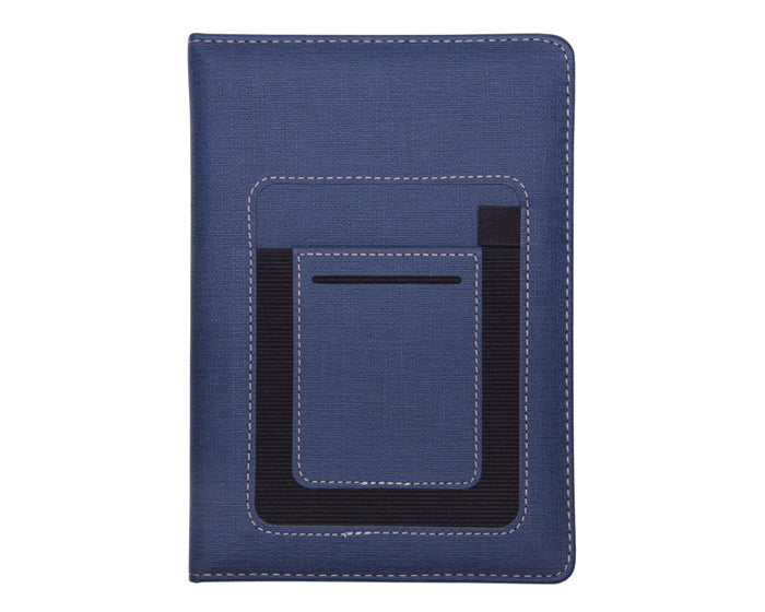 Libreta personal de 80 hojas 160 páginas con cubierta de curpiel texturizada. Contiene 2 compartimentos uno para tarjetas y otro para celular o notas, banda elástica para bolígrafo.