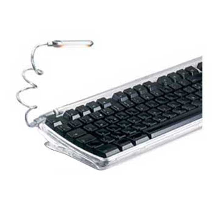 Mini lámpara fabricada en plástico con cable forrado y terminal USB. Disponible en color blanco.