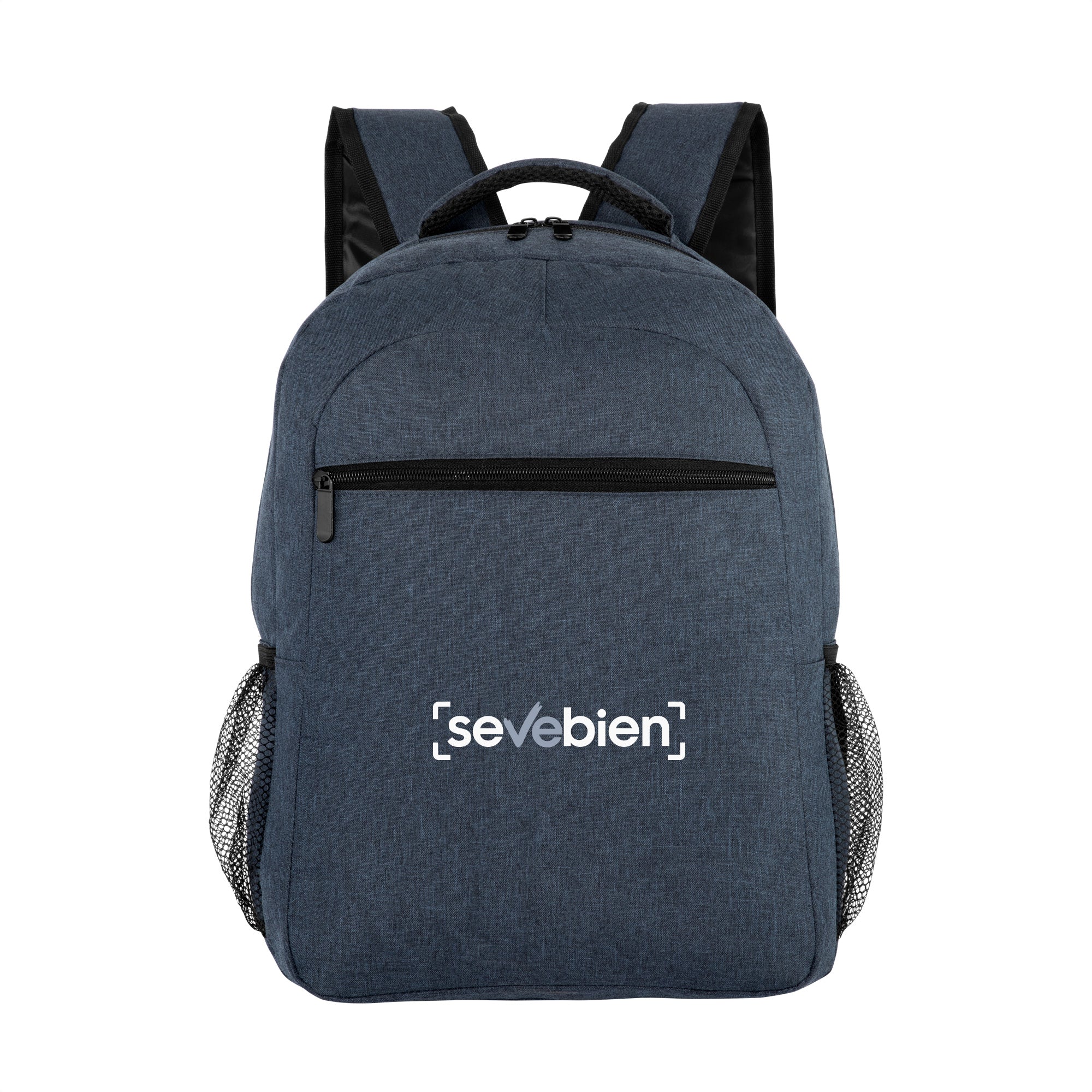 Lleva lo esencial bien resuelto.Mochila portanotebook de hasta 16 pulgadas. Compartimento principal con cierre bidireccional. Interior con bolsillo acolchado portanotebook y cierre con velcro. Amplio bolsillo frontal horizontal con cierre. Dos bolsillos laterales de red elastizados porta botellas y accesorios. Asa superior, correas y espalda acolchados. Correas ajustables. Tiradores de cierres metálicos color negro.Medidas: 42 x 30 x 14 cm.  Capacidad: 18 litros.  Materiales: Poliéster bitono 300D. Interior forrado en poliéster 210D y espuma de polietileno.