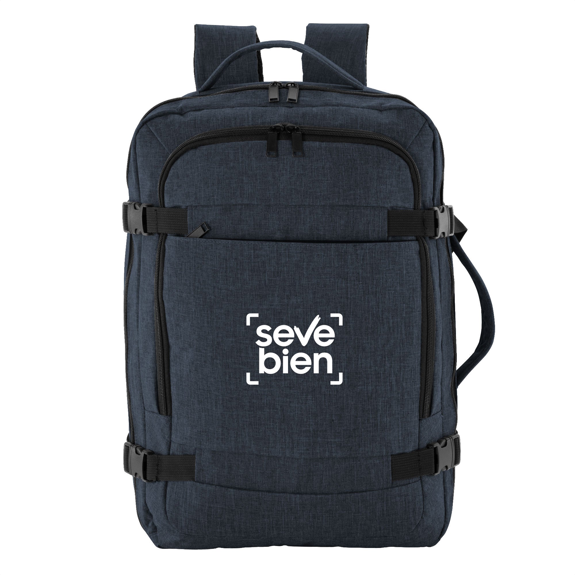 Viaja con todo lo que necesitas.Mochila carry on con 4 compartimentos acolchados. Compartimento principal central con cierre de apertura 360° y elástico con hebilla para contener la ropa en un viaje de trabajo. Compartimento posterior con cierre y portanotebook de hasta 17 pulgadas. Compartimento frontal, exterior con cierre horizontal e interior con bolsillos organizadores. Dos asas, vertical y horizontal para un mejor traslado.  4 correas de hebillas ajustables al volúmen que se traslade. Espalda acolchada con red que permite ventilación. Tira para sujetar la mochila en la manija extensible de un equipaje de mano. Correas acolchadas. Tiradores de cierre plásticos. Medidas: 32 x 46 x 20 cm.  Capacidad: 20 litros.  Materiales: PolIéster 300D bicolor. Interior forrado en 210D.. Medidas Ancho: 54.0 . Medidas Alto: 41.0 . Medidas Profundidad: 56.0