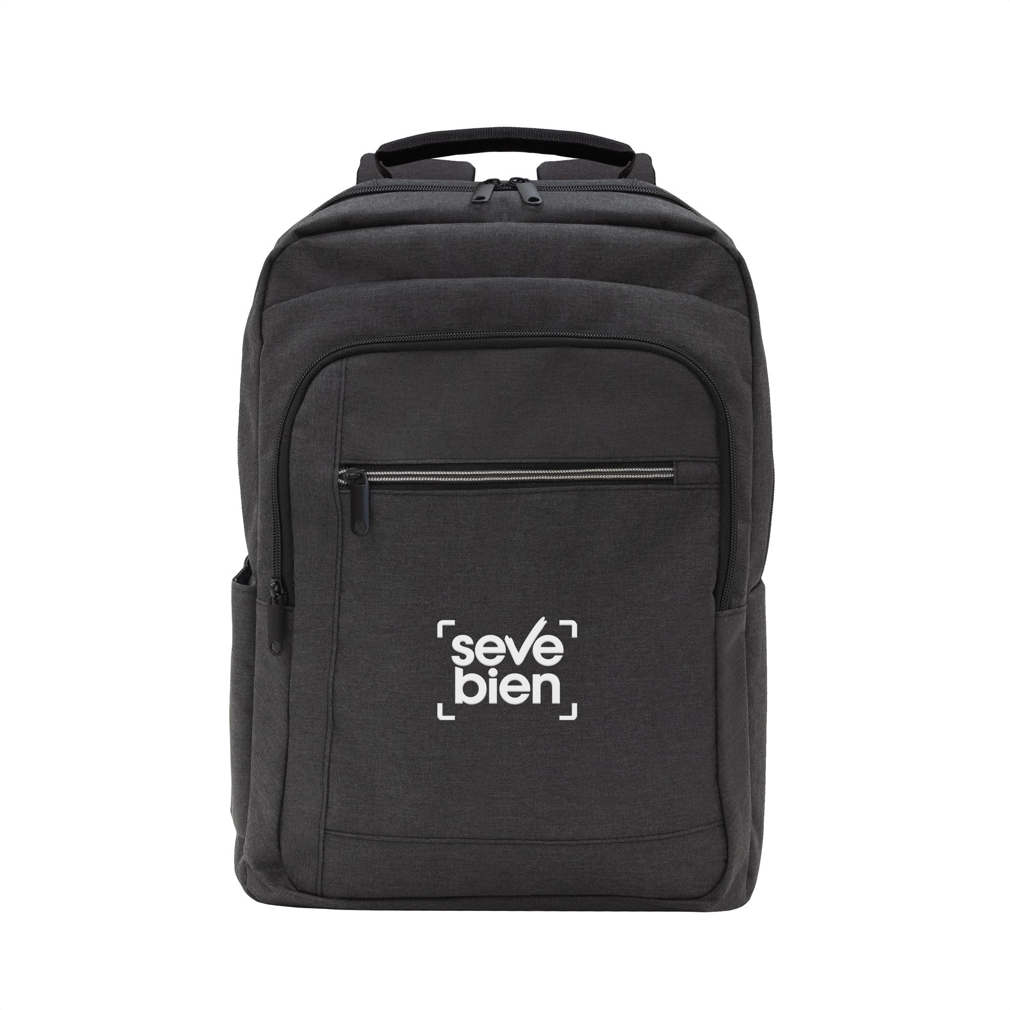 29 x 41 x 11 cm. Capacidad 13 litros. Poliéster wulong 300D. Interior forrado en 210D. Mochila portanotebook de hasta 15 pulgadas. Cuenta con dos compartimentos, compartimento principal con bolsillo acolchado para la notebook, y otro compartimento frontal con bolsillo organizador. Frente con bolsillo horizontal con cierre. Asa superior, correas y respaldo acolchados. Correas ajustables. Tira para sujetar la mochila en la manija extensible de un equipaje de mano. Tiradores de cierres metálicos color negro.. Medidas Ancho: 35.0 . Medidas Alto: 32.0 . Medidas Profundidad: 48.0