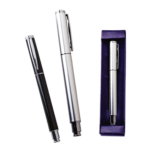 Bolígrafo metálico roller. Incluye estuche.. Medida producto alto: 13.7 . Medida producto ancho: 1.2 . Area impresion: 0.8 x 5 cm