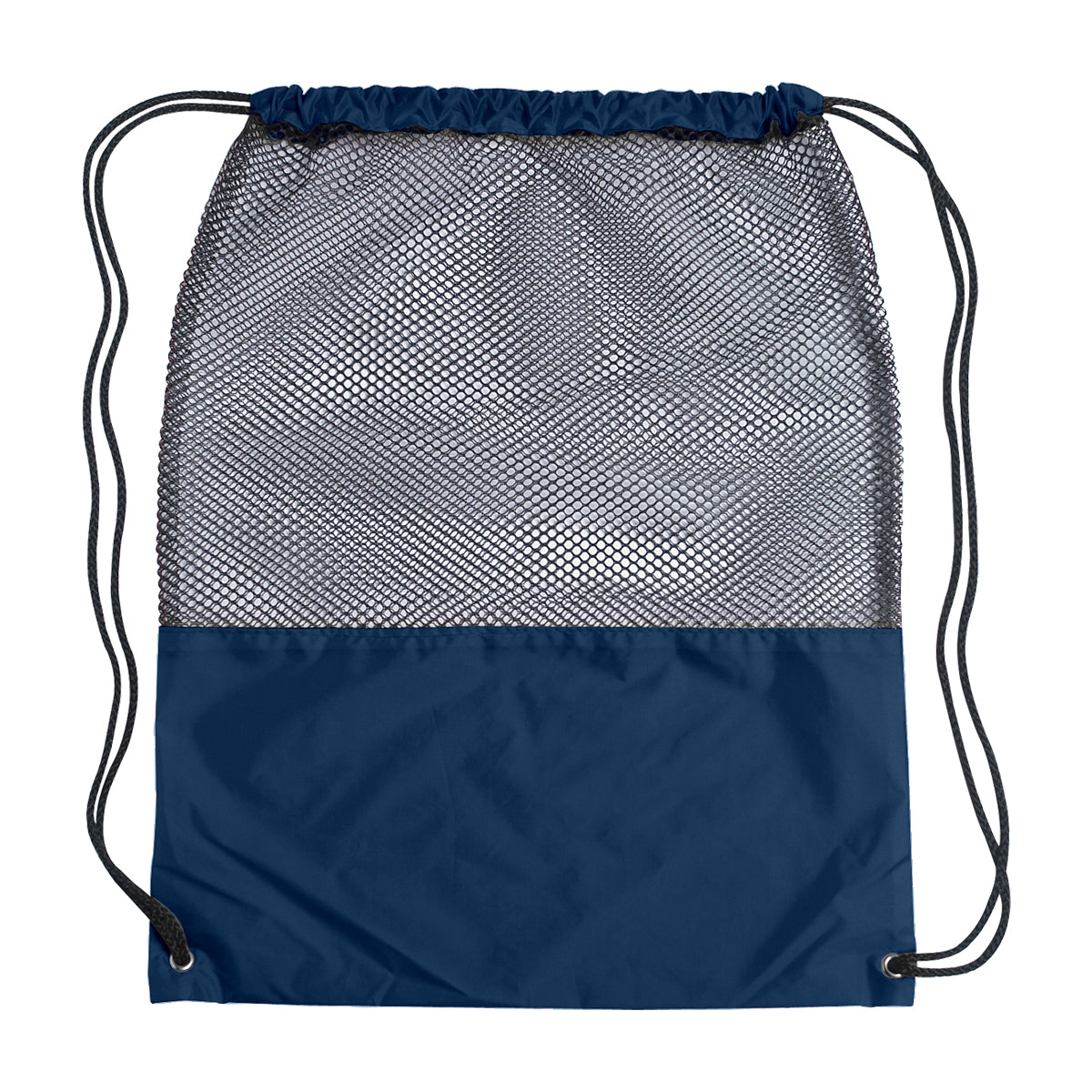 Morral deportivo fabricado de la combinación de: poliéster 210D y malla. Cuenta con ojales reforzados y se cierra con cordón.
