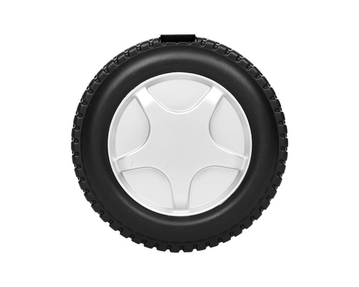 Juego de herramientas en forma de llanta. Incluye: desarmador con adaptador para 10 puntas, 4 dados, cuter y 4 desarmadores de relojero. Presentación: caja en color negro.