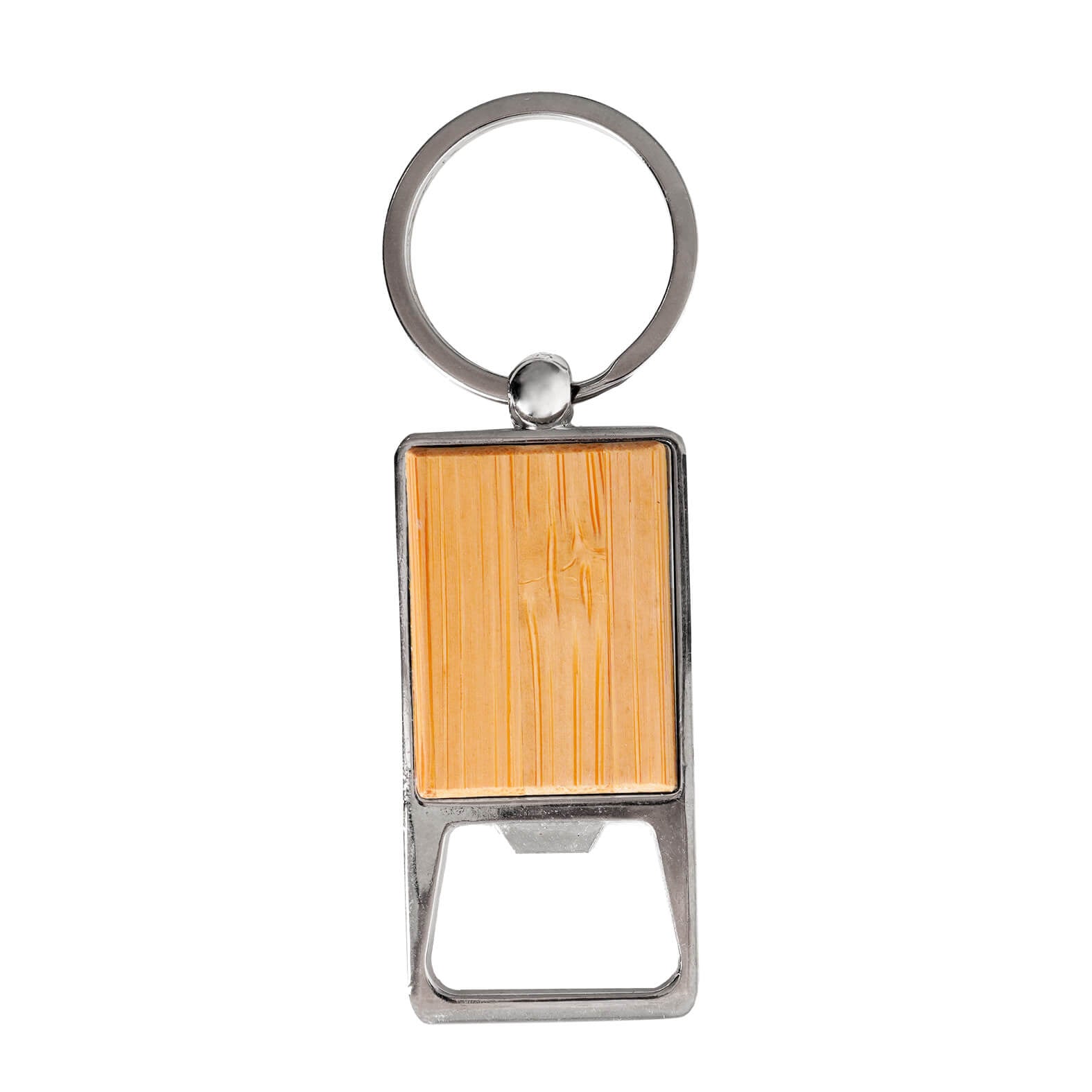 Destapador de metal con bambú y aro reforzado.. Medida producto alto: 3 . Medida producto ancho: 6 . Area impresion: 2.5 x 2 cm