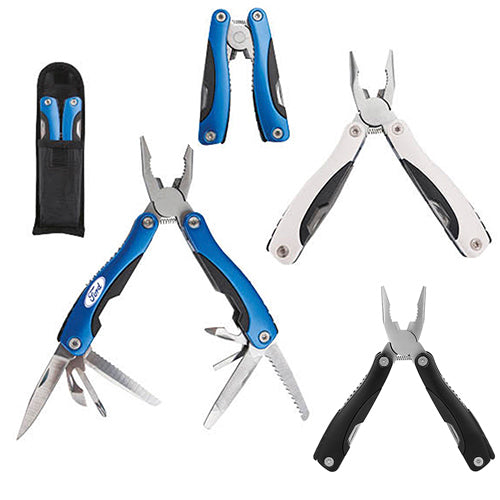 Herramienta plegable con 9 funciones: lima, abre latas, doble destapador, sierra, desarmador de cruz, dos desarmadores planos, navaja, pinzas y seguro de bloqueo. Incluye funda.. Medida producto alto: 16 . Medida producto ancho: 13.5 . Area impresion: 0.7 x 3.5 cm