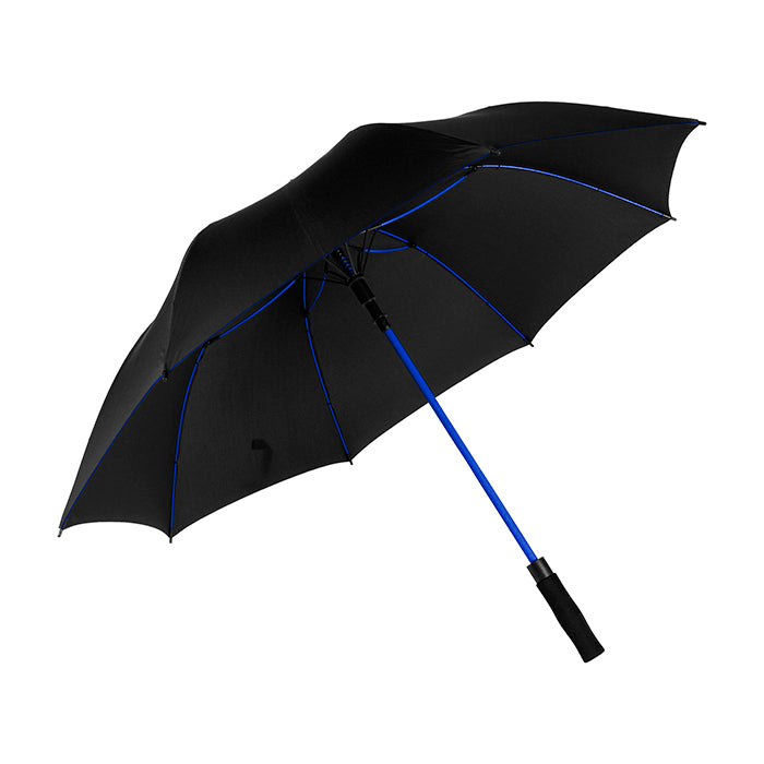 Paraguas automático fabricado en Pongee con mango de Eva y varillas en fibra de vidrio.