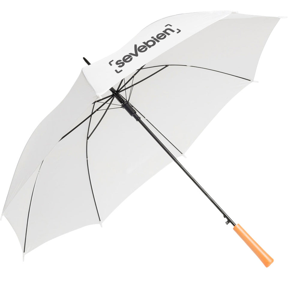 Ø 100 cm. 8 gajos. Ancho gajo 40 cm. Largo total 84 cm. Poliéster, metal y PVC. Paraguas APERTURA AUTOMÁTICA Y CIERRE MANUAL. Eje, varillas y punta metálicas y mango en PVC, símil madera. Botón a presión. Cierre con correa de velcro.. Medidas Ancho: 17.0 . Medidas Alto: 37.5 . Medidas Profundidad: 85.5