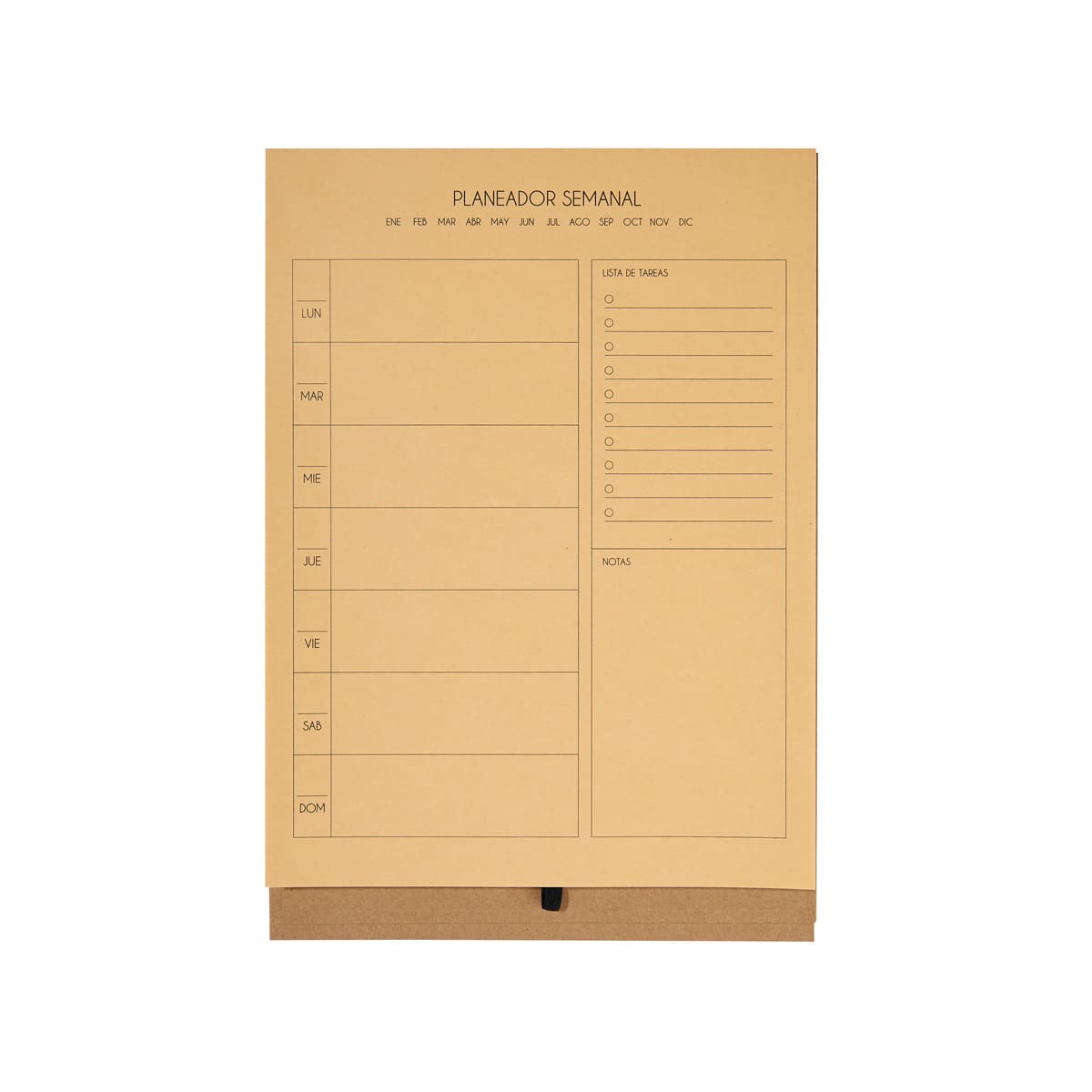 Planeador semanal tamaño profesional de pasta dura. Cuenta con 80 hojas ecológicas y elástico para bolígrafo no incluido. Organiza fácilmente tus actividades y logra tus objetivos.. Medidas: 21 x 30 cm . Material: Cartón / Papel Kraft