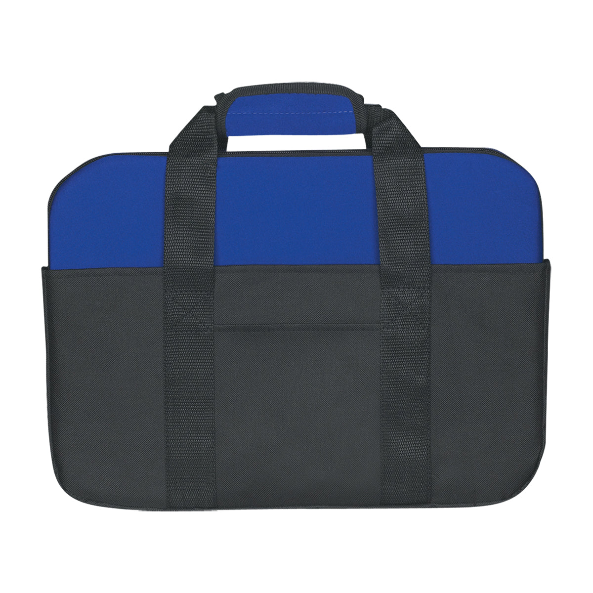 Porta laptop fabricado de la combinación de poliéster 600D y neopreno. Cuenta con un estuche extraíble con compartimiento principal con cierre, bolsillo delantero y asas de transporte acolchadas con tela metálica con cierre de gancho y bucle agarre cómodo.