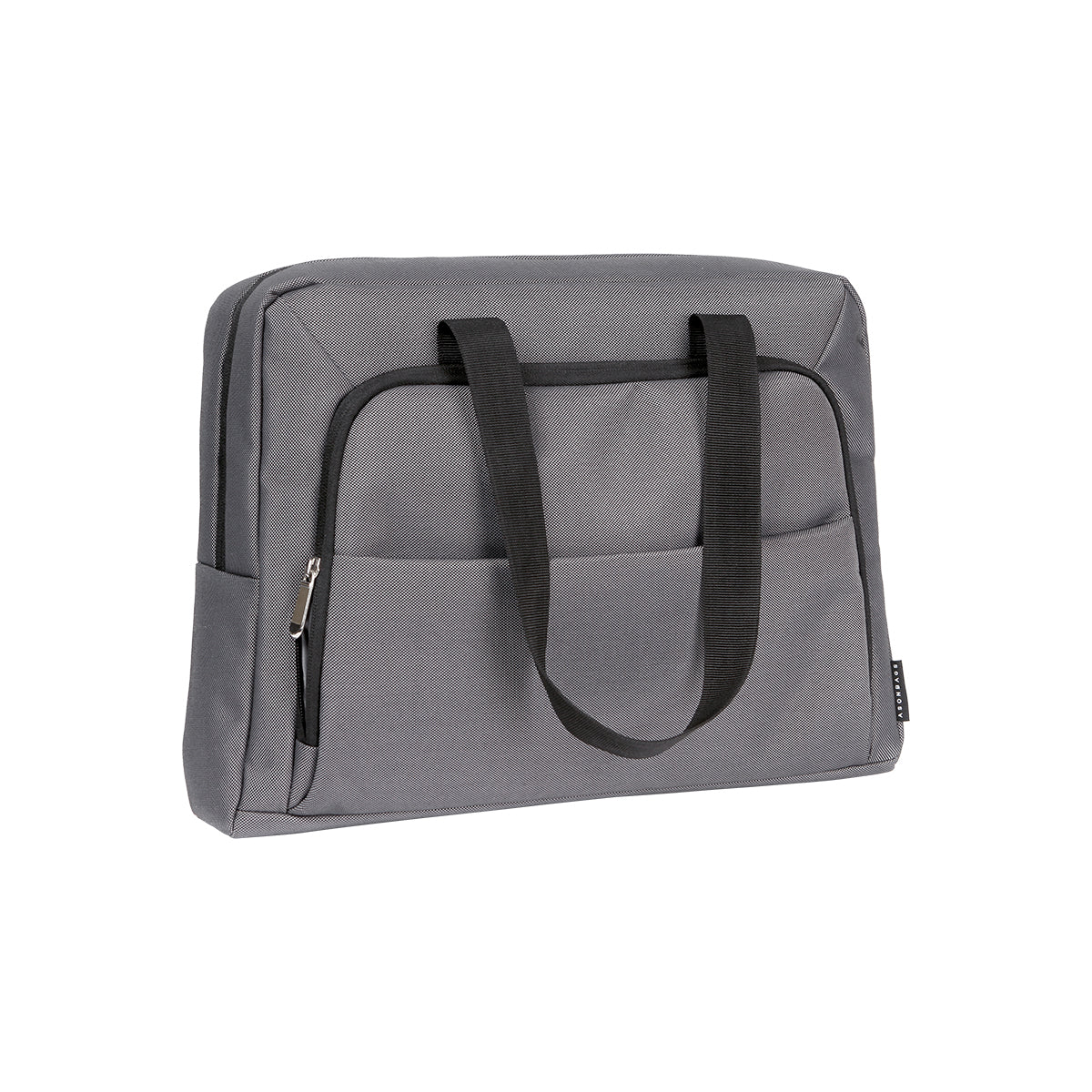Portafolio para laptop fabricada en poliéster, con relleno de espuma de PE. Incluye compartimento principal, secundario, además de bolsillo para documentos y dos asas.