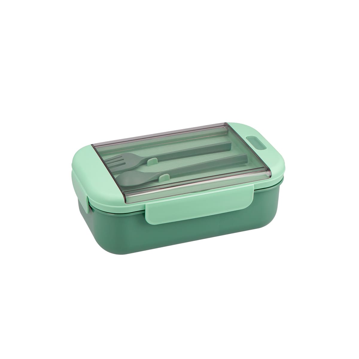 Contenedor para almacenar alimentos. Al interior cuenta con división para separar tu comida. Su tapa es con cierre hermético para evitar derrames. Incluye cuchara, tenedor de plástico y caja individual.. Medidas: 21.5 x 8 x 12.5 cm . Material: Plástico