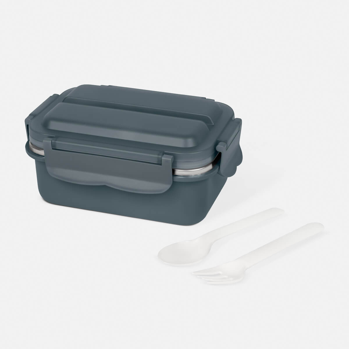 Contenedor térmico de doble pared. Pared interna de acero inoxidable, Pared externa de plástico. Tapa con cierre hermético y válvula para alimentos calientes. Incluye cuchara y tenedor de plástico. Permite lavado en lavavajillas. No apto para microondas. Caja individual.. Medidas: 20 x 9 x 14.5 cm . Material: Acero inoxidable / Plástico