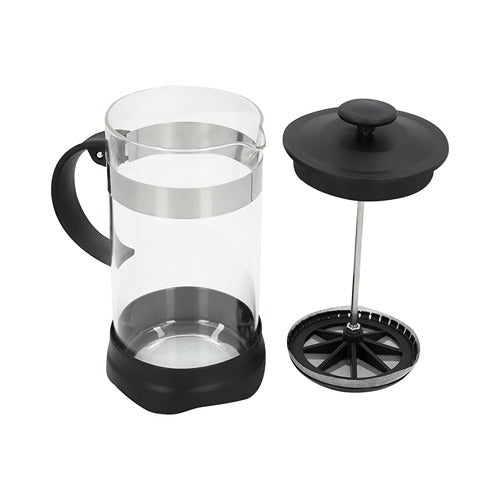 Prensa francesa con capacidad para 2 tazas. Incluye caja individual.. Medidas: 9.8 x 18 cm . Material: Vidrio Borosilicato / Plástico / Acero Inoxidable