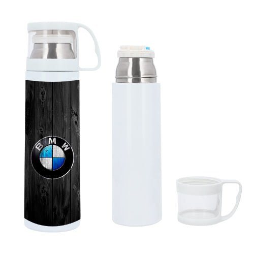 Termo sublimable de acero inoxidable insulado al vacío con boquilla enroscable. Incluye tapa que sirve como taza.. Medida producto alto: 24.5 . Medida producto ancho: 7 . Area impresion: 20 x 18 cm