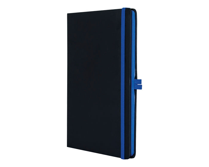 Libreta personal para bitácora tamaño A5 con 80 hojas 160 páginas. Con borde de las hojas de color, banda elástica para sujetar y separador de listón.