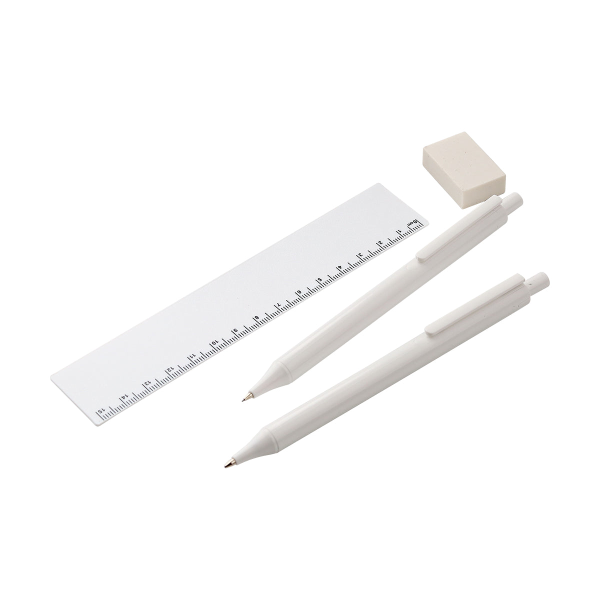 Set escolar fabricado en ABS con material Antibacterial iones de plata. Incluye regla de 15cm, lapicero, bolígrafo con tinta negra, y goma; todo en un estuche fabricado en el mismo material Antibacterial con certificación ISO 22196 que inhibe hasta en un 99.9 el crecimiento y multiplicación de bacterias. El aditivo tiene como base los iones de plata, tecnología que que ha sido reconocida y utilizada durante siglos y que no tiene efectos dañinos.