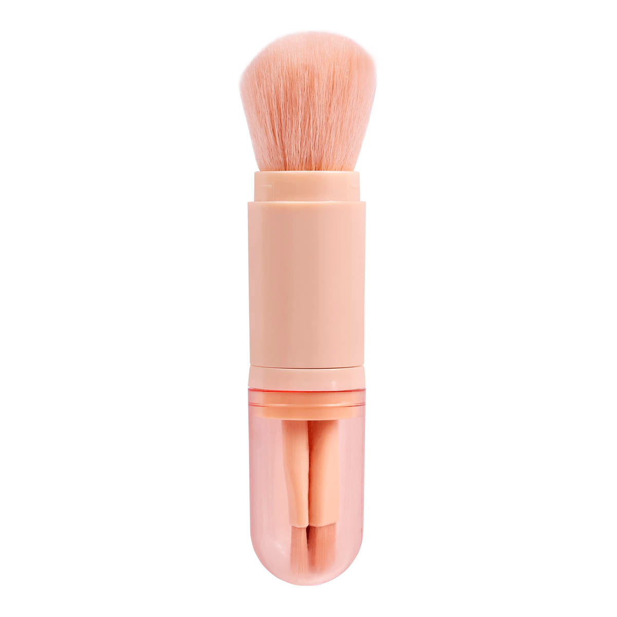 Set de brochas para maquillaje 4 en 1. Este kit innovador ahorra espacio sin sacrificar lo esencial. Incluye brocha para aplicar rubor, 2 brochas de diferente grosor para la aplicación de sombras y brocha para labios. Su diseño retráctil lo hace fácil de guardar y su practico estuche te ayuda a mantenerlos protegidos.. Medidas: 2.8 x 13.7 cm . Material: Plástico