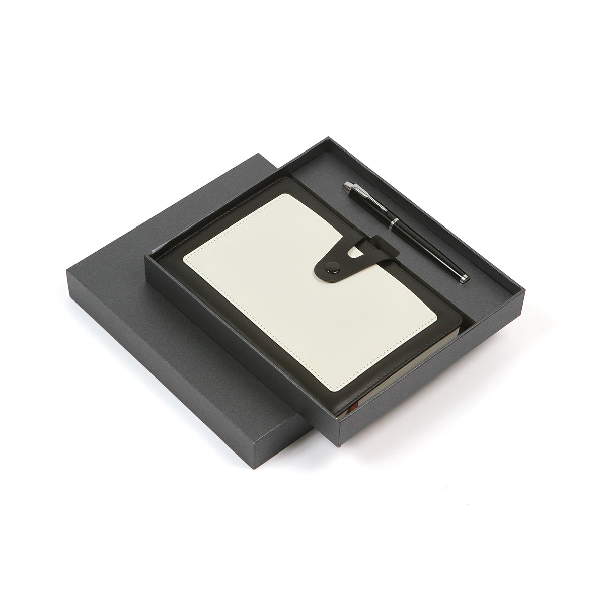 Set ejecutivo, incluye libreta rayada tamaño A5 14.8*21.2*2.5 cm, de 100g y 96 hojas. Set empaquetado en caja de regalo con diseño ejecutivo 20.5*23.2*3.4cm y espacio adecuado para guardar bolígrafo con tinta de escritura negra.