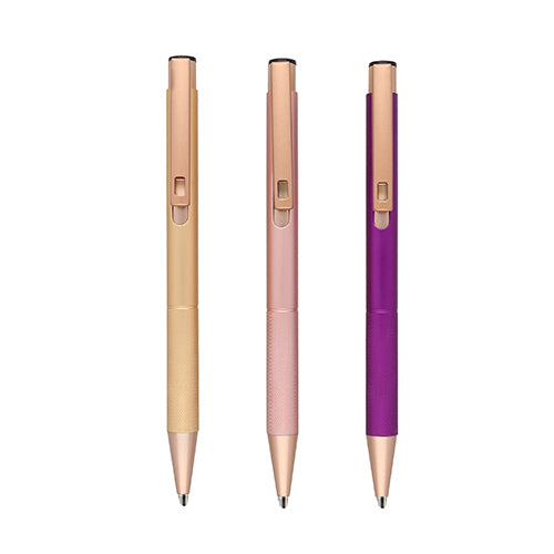 Bolígrafo de aluminio con detalles en el clip y grip, con mecanismo de click.. Medida producto alto: 13.5 . Medida producto ancho: 1 . Area impresion: 0.8 x 4 cm