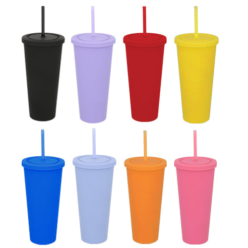 Vaso de plástico con doble pared, tapa enroscable y acabado rubber, incluye popote de plástico.. Medida producto alto: 20.5 . Medida producto ancho: 10 . Area impresion: 8 x 6 cm