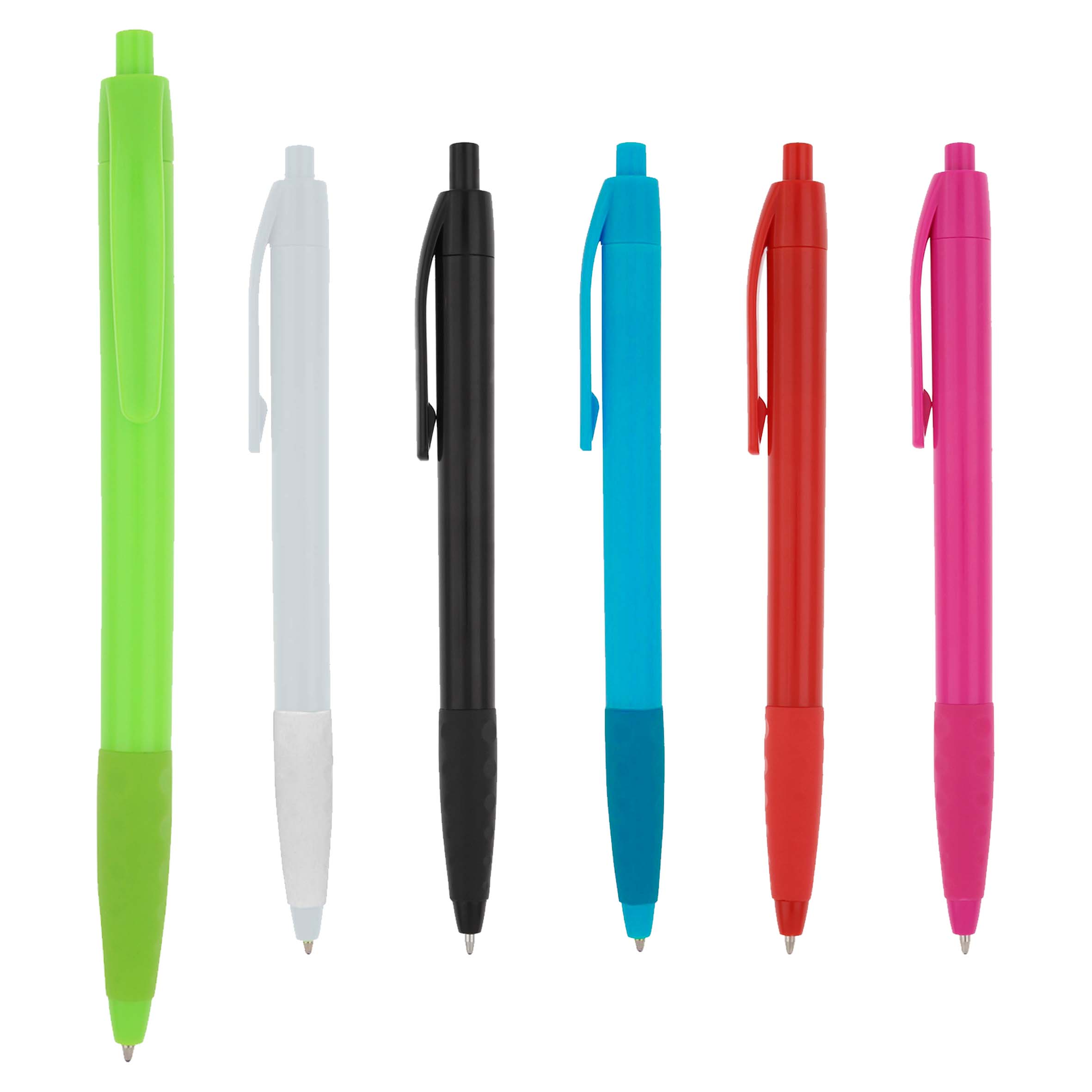 Bolígrafo de plástico de color sólido, con clip, textura y mecanismo de click.. Medida producto alto: 13.8 . Medida producto ancho: 1.1 . Area impresion: 4.5 x 0.7 cm